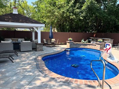 All of the pools that The Nasello Group LLC., builds are made from either Gunite (concrete) or Vinyl and many additions can be added to enhance your enjoyment and relaxation. Add a spa (either free standing or as part of your pool), a fun slide for kids of all ages, or a beautiful waterfall, fountain or jet.